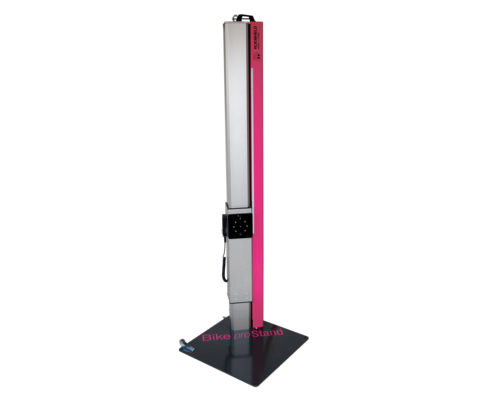 Der Bike proStand ist eine stationäre, elektrisch betätigte Montagevorrichtung für Fahrräder, Lastenfahrräder und E-Bikes bis 40 kg Gewicht. Ohne elektrische Drehachse ist er sogar bis 70 kg belastbar.
