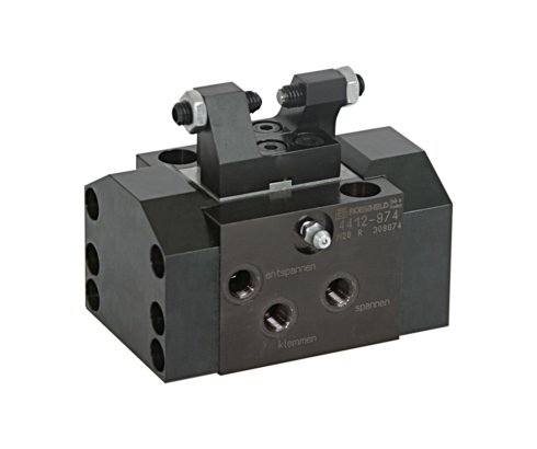 Der positionsflexible Spanner ist ein kleiner Spannstock mit zwei beweglichen Backen, die über einen gemeinsamen Hydraulikanschluss betätigt werden. Dabei wird das Werkstück, unabhängig von seiner Position innerhalb des Spannbereiches, zangenartig (schwimmend) gespannt.