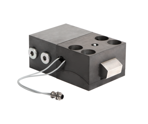 The arch clamp consists of a hydraulic block cylinder and a piston guided in a housing. The arch-shaped clamping bolt clamps the die or mould by placing on the flat clamping edge. Due to the design inside the clamping element, the horizontally-acting force is deflected and hits the clamping surface almost vertically.