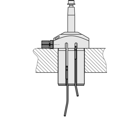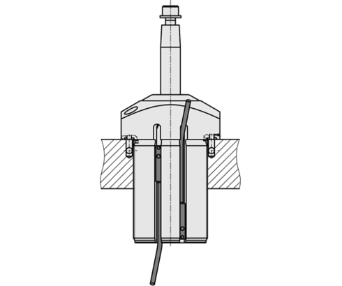 Al recibir la presión neumática, la brida de sujeción gira 90°, bajándo a la posición de sujeción, después efectúa la carrera rectilínea de sujeción. El control de posición da las informaciones necesarias sobre la posición del pistón, pero no sobre la posición de la brida. El control se efectúa por sensores electrónicos (ver accesorios) que detectan el campo magnético del pistón magnético. Los puntos de conexión pueden regularse de forma continua mediante el desplazamiento de los sensores.