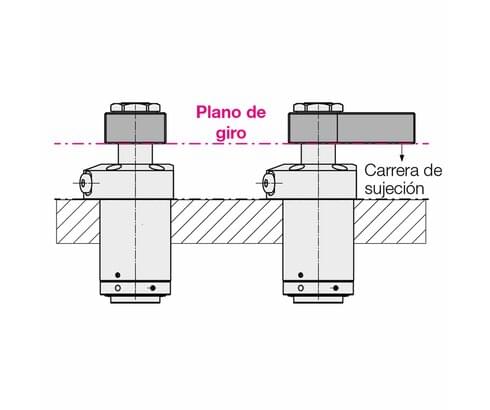 En esta versión sin carrera de giro axial, la brida de sujeción gira en un plano y no ejecuta ningún movimiento axial al girar.