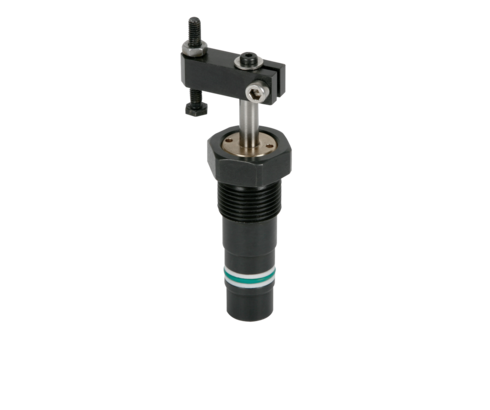 La garra giratoria mini de doble efecto es un cilindro a tracción. Una parte de la carrera total se utiliza para el giro del pistón (carrera de giro). Hay ejecuciones con giro a la derecha y a la izquierda con ángulo de giro de 90, 60 y 45 grados. La ejecución sin giro puede utilizarse como cilindro a compresión y a tracción con pistón protegido contra las torsiones. Las bridas de sujeción se blocan sobre el vástago del pistón. Un tornillo de seguridad evita un desplazamiento axial.