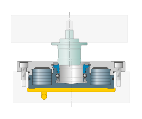 The pneumatic versions of the STARK.classic.NG product family are a useful addition to the hydraulic-releasing clamping elements. Particularly suitable for applications with low machining forces such as measuring machines, assembly applications or cleaning systems. For example, a device that has been clamped for machining with hydraulic-releasing clamping elements can be clamped easily and quickly for intermediate measurements or assembly work with pneumatic-releasing clamping elements.
