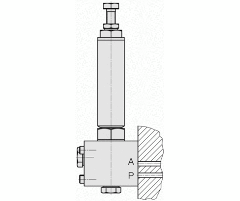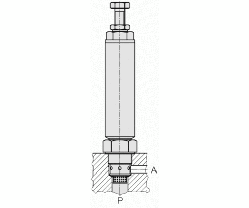 El aceite hidráulico pasa sin impedimentos de P a A con una presión interior a la presión de salida regulada. Al aumentar la presión, se supera la fuerza del muelle regulada y una válvula antirretorno cierre con estanqueidad hermética el paso del aceite. Así se evita un nuevo aumento de la presión, también en el caso de aumento de la presión de entrada p. Si la presión cae, por ejemplo a causa de fugas en el lado del cilindro, la válvula antirretorno se abre por medio de un muelle fuerte de compresión contra la presión de entrada p existente. El aceite puede pasar de nuevo hasta que se alcance la presión de salida regulada. Esta válvula reguladora de presión no puede compensar una presión de salida aumentanda, por ejemplo a causa de calentamientos. Un retorno de A a P sólo es posible si la presión de entrada p cae por debajo de la presión de salida regulada.